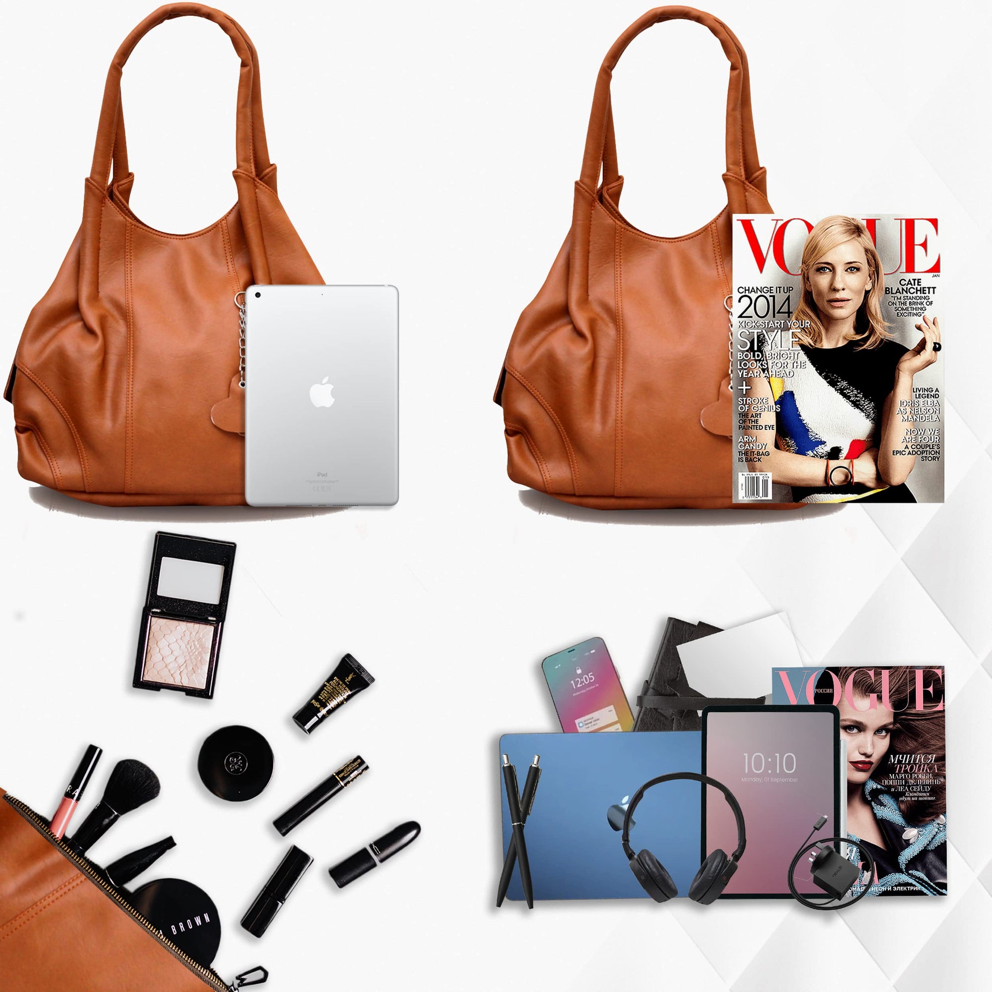- Spacious and Roomy: Fostelo stylish handbags for women looks compact but is roomy. You will have enough space to keep all your essentials. This Faux leather handbag for women contains 2 main pockets, 1 interior middle zipper pocket and 1 exterior back zipper pocket that can comfortably hold iPhone, iPad, wallet, cosmetics, umbrella, books, tiffin box, and so on.