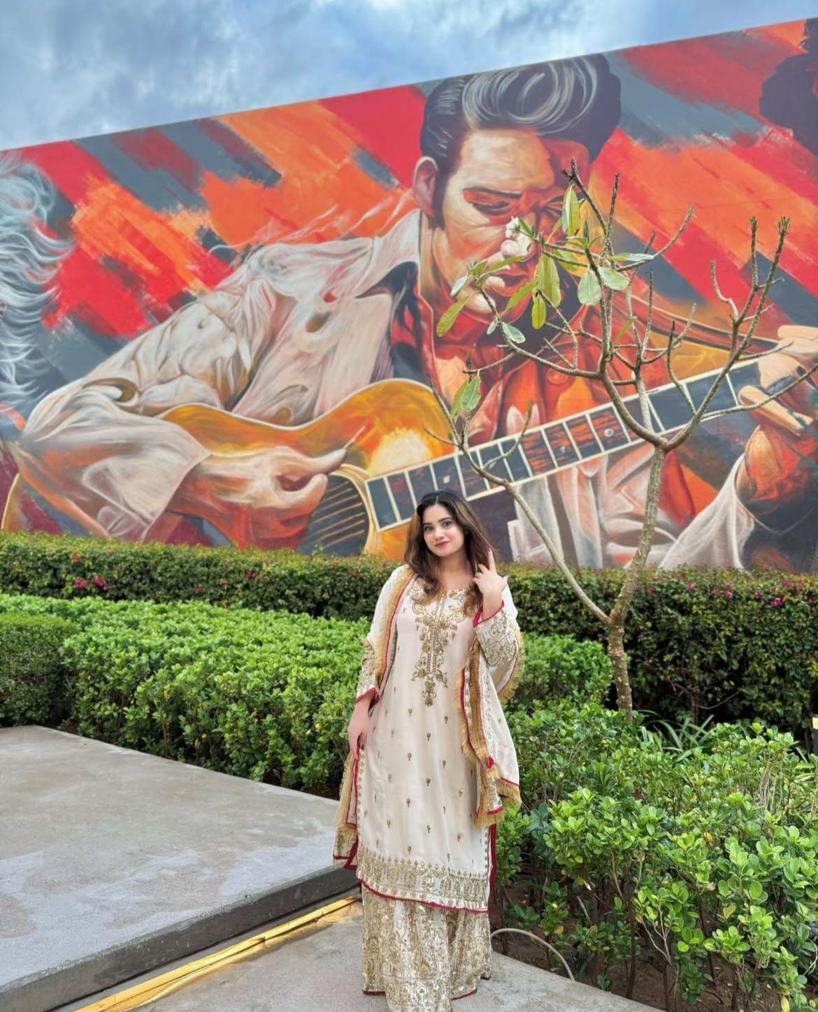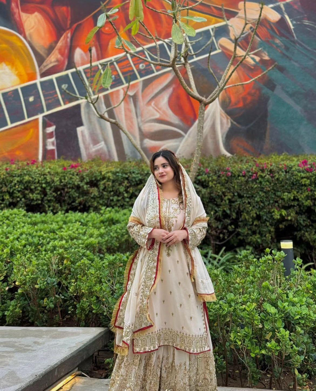 This elegant ensemble features a beautifully designed top crafted from faux georgette, with a micro cotton inner for added comfort. The top is adorned with heavy embroidery, 5mm sequins work, and contrast fabric piping on the front side, giving it a sophisticated appeal. It comes fully stitched in a 42 XL free size with an additional margin for XXL, measuring 36 inches in length. The matching sharara is also made from faux georgette and features intricate heavy embroidery, 5mm sequins work, and contrast fabric piping. Lined with micro cotton for comfort, the sharara is fully stitched and available in sizes up to XXL, with a length of 40-42 inches. Completing the look is a 2.10-meter-long faux georgette dupatta, embellished with heavy embroidery, 5mm sequins work, contrast fabric piping, and a fancy lace border, adding a graceful finishing touch to this stunning outfit.