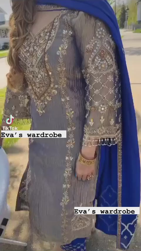 Bespoke tissue silk suit with handworkTabby heavy salwarHeavy handwork sleevesOrganza dupatta